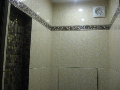 Наша компания выполнила ремонт ванной комнаты и туалета на улице Коломенская. Солидности интерьеру придают светло-бежевые и коричневые цвета, используемые при отделке поверхностей. Примечательно, что для облицовки нижней части стены и защитного экрана использовалась разноцветная мозаика. В комнате установлены ванна с гибким душем, штанга для штор, электрический полотенцесушитель и мойдодыр. В туалете смонтирован унитаз, а инженерные коммуникации замаскированы под общий интерьер. Общая смета ремонта — 125 тыс. руб. Черновые материалы — 34 тыс. р.
