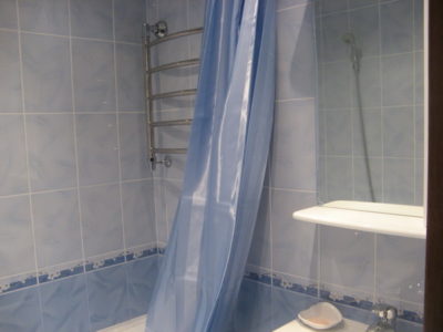 При выполнении ремонта ванной комнаты в квартире на Литовском бульваре мы сделали ставку на эргономичность. Дизайнеры учли особенности нестандартной планировки и смогли компактно расположить сантехническое оборудование с мебелью. В нише мы компактно разместили стиральную машинку и подвесной шкафчик, а на основной площади смонтировали акриловую ванну и двухсекционный мойдодыр. Чтобы визуально расширить пространство, для отделки поверхностей была использована керамическая плита небесного цвета двух оттенков. Защитный экран под ванной задекорировали в тон общему интерьера. Общая стоимость работ составила 74840 тысяч рублей. Черновые материалы — 19 тыс. 600 руб.